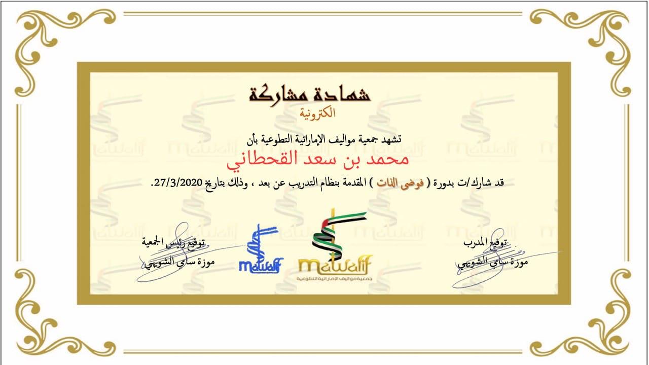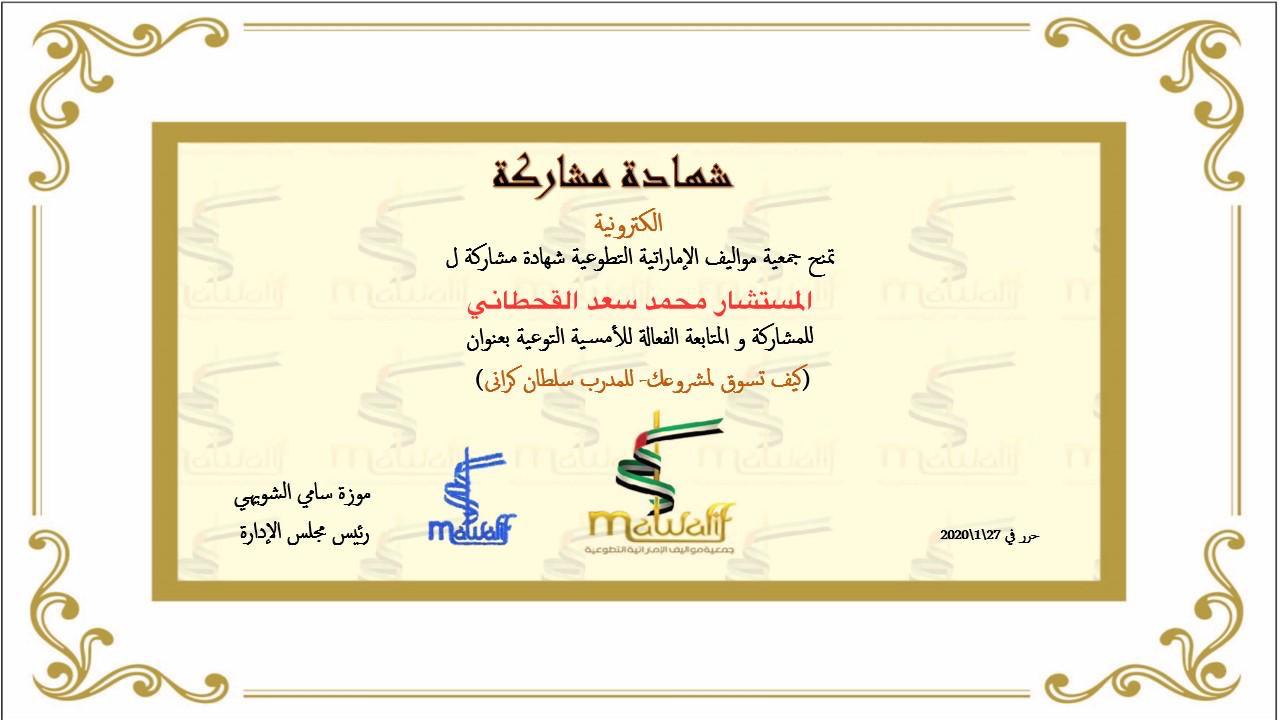 مجموعة من شهادات الاعتماد والخبرات المهنية للمستشار محمد بن سعد صويلح القحطاني