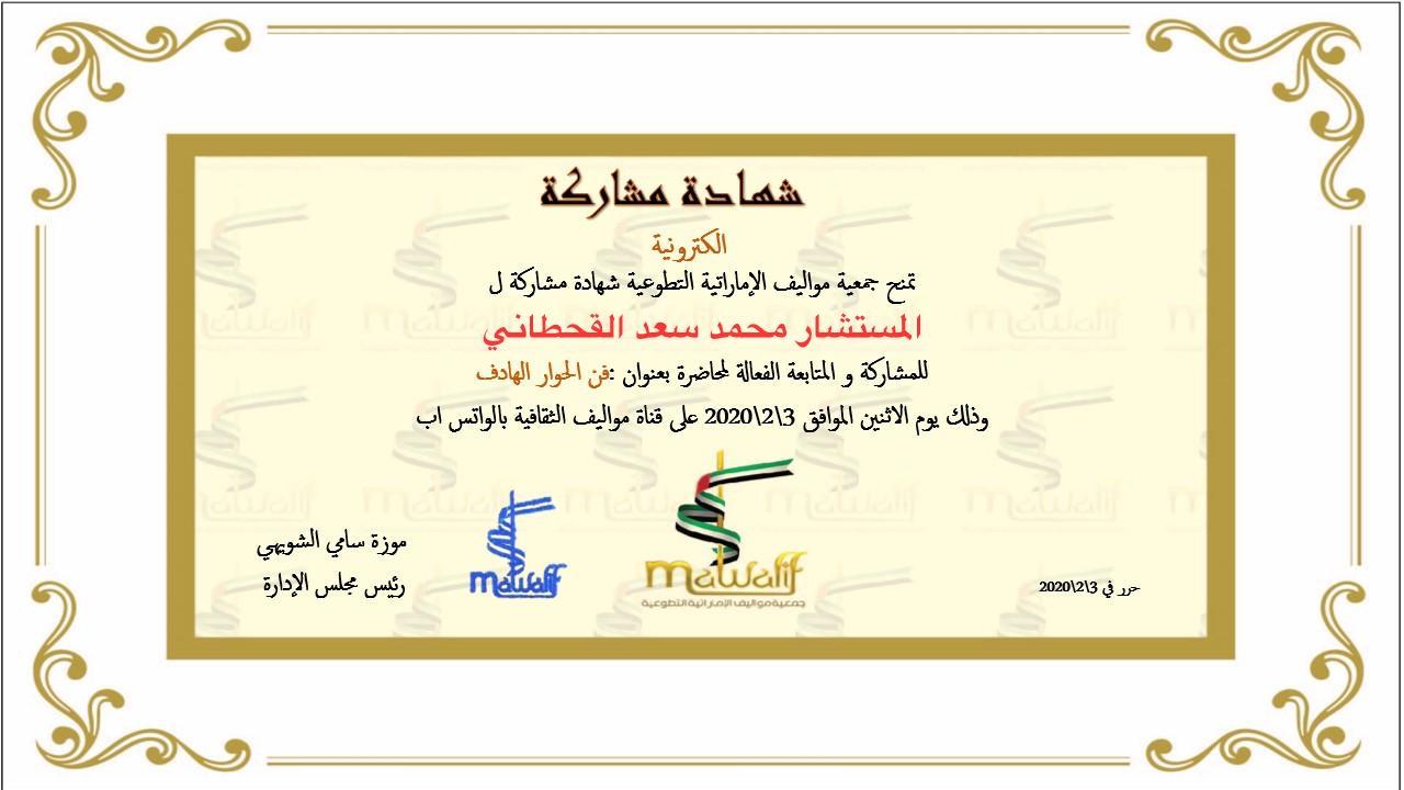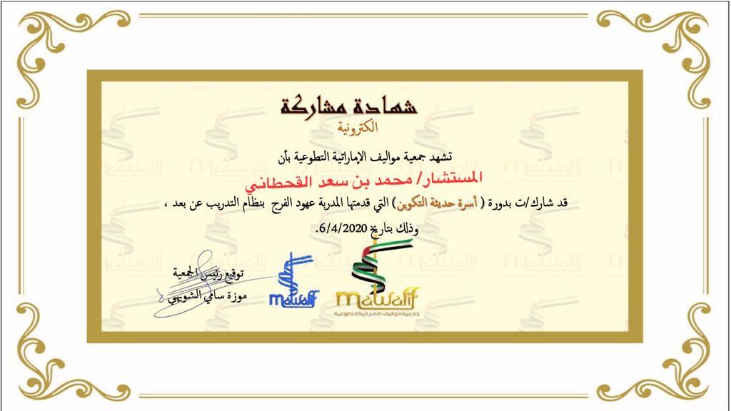 مجموعة من شهادات الاعتماد والخبرات المهنية للمستشار محمد بن سعد صويلح القحطاني